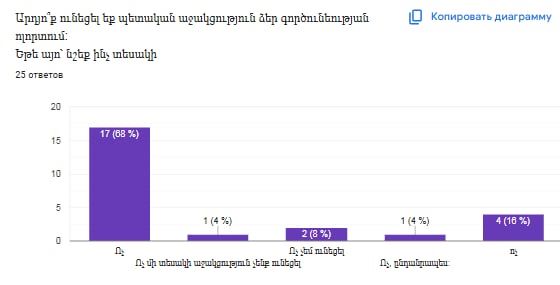 Աջակցություն ստացածներն էլ հիմնականում նշում են, որ դրանք եղել են տեղական ՀԿ-ների կամ միջազգային կազմակերպությունների փոքր դրամաշնորհային ծրագրեր՝ GIZ, AGBU, Gloobing, Eurasia Partnership և այլ կազմակերպությունների կողմից՝ հիմնականում բիզնեսի վարման դասընթացների, տեխնիկայի ու սարքավորումների տեսքով։