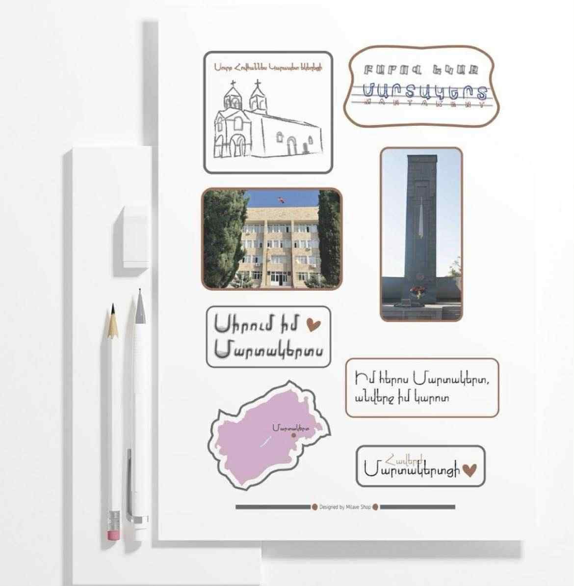 «Այժմ ունենք 3 հիմնական պրոդուկտ՝ Սթիքերներ, նոթատետրեր, պլանավորման տետրեր։ Մեր արտադրանքն ներառում է Արցախի տարբեր շրջանների բարբառները․ ունենք նաև թեմատիկ սթիքերների հավաքածուներ, օրինակ՝ Հադրութի կամ Մարտակերտի բարբառներով»,- ասում է Միլենան։