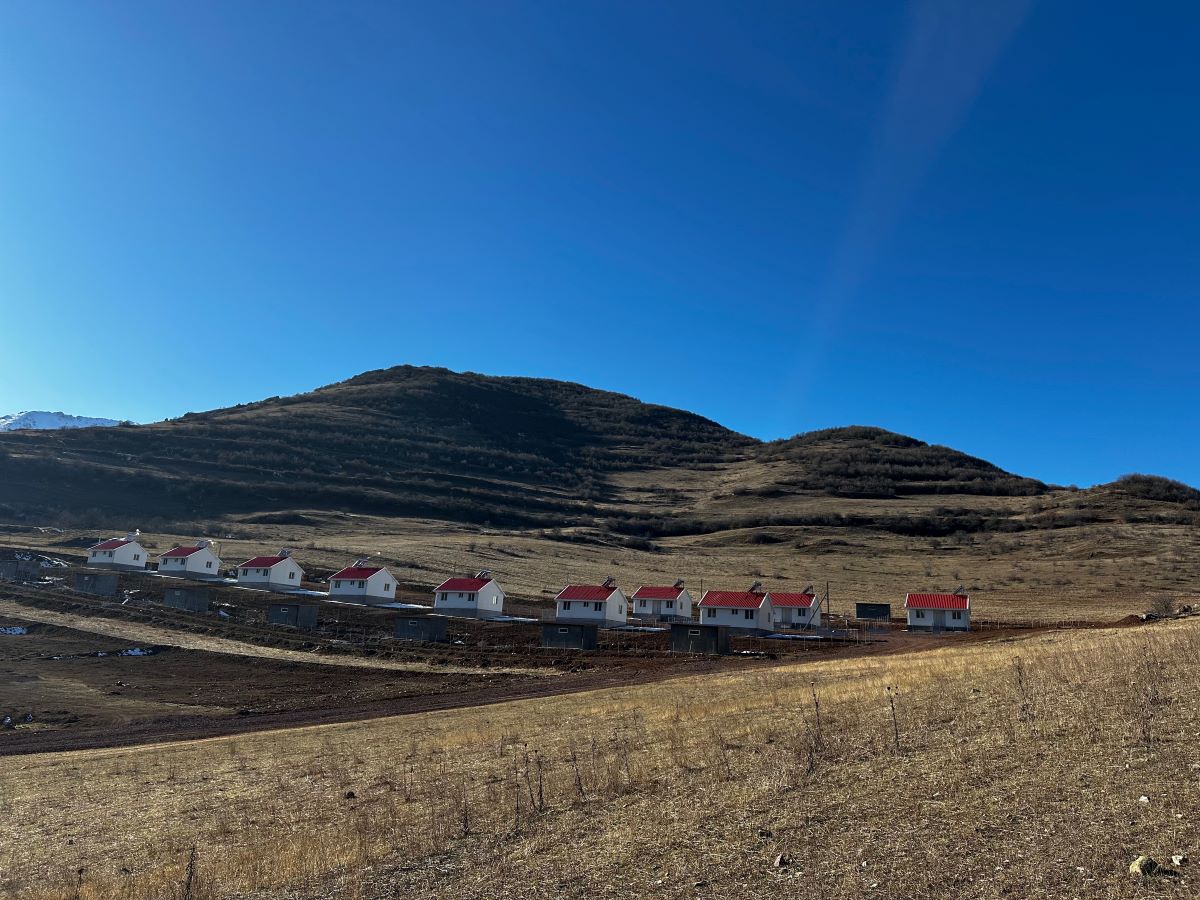 Թուֆենկյան հիմնադրամն այստեղ 10 նոր տուն է կառուցել Արցախից բռնի տեղահանված ընտանիքների համար, և կարմիր կտուրնեն արդեն փայլում են գյուղ տանող հողե ճանապարհից: