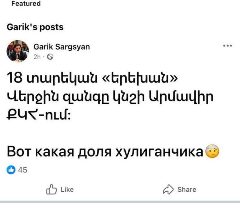 «Карабах уже отдали, остается позаботиться об Армении» — этот тезис повторяют не только власти, но и оппозиция, хотя в другом фрейме. Власти говорят, что «Карабах отдали до нас», и мы сейчас ничего не можем сделать, а оппозиция говорит, что «Никол уже отдал Карабах», цементируя этот тезис в матрице общественного сознания. Тех, кто говорит, что «Карабах пока никто не отдал», называют в лучшем случае безнадежными романтиками или милитаристами. Хотя никаких документов, подтверждающих «сдачу Карабаха», нет.