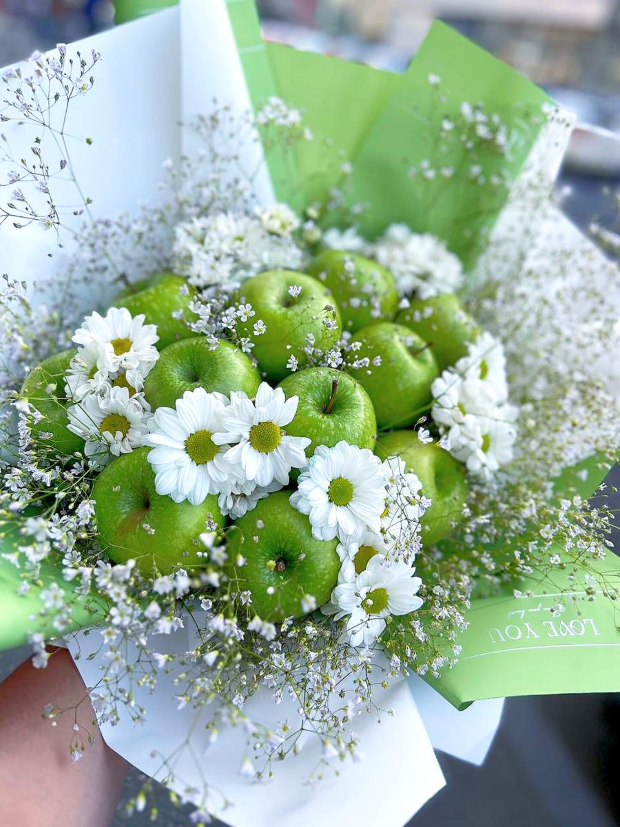 «По ту сторону окна был декабрь, до Нового года оставались считанные дни, самая пора собрать мандариновый букет, — говорит Ася. Первый букет произвел впечатление на друзей, и она решила открыть в Facebook страницу «Вкусные букеты» и показать свои работы. Сначала это были сладости, потом она стала собирать в букеты фрукты и другие продукты.