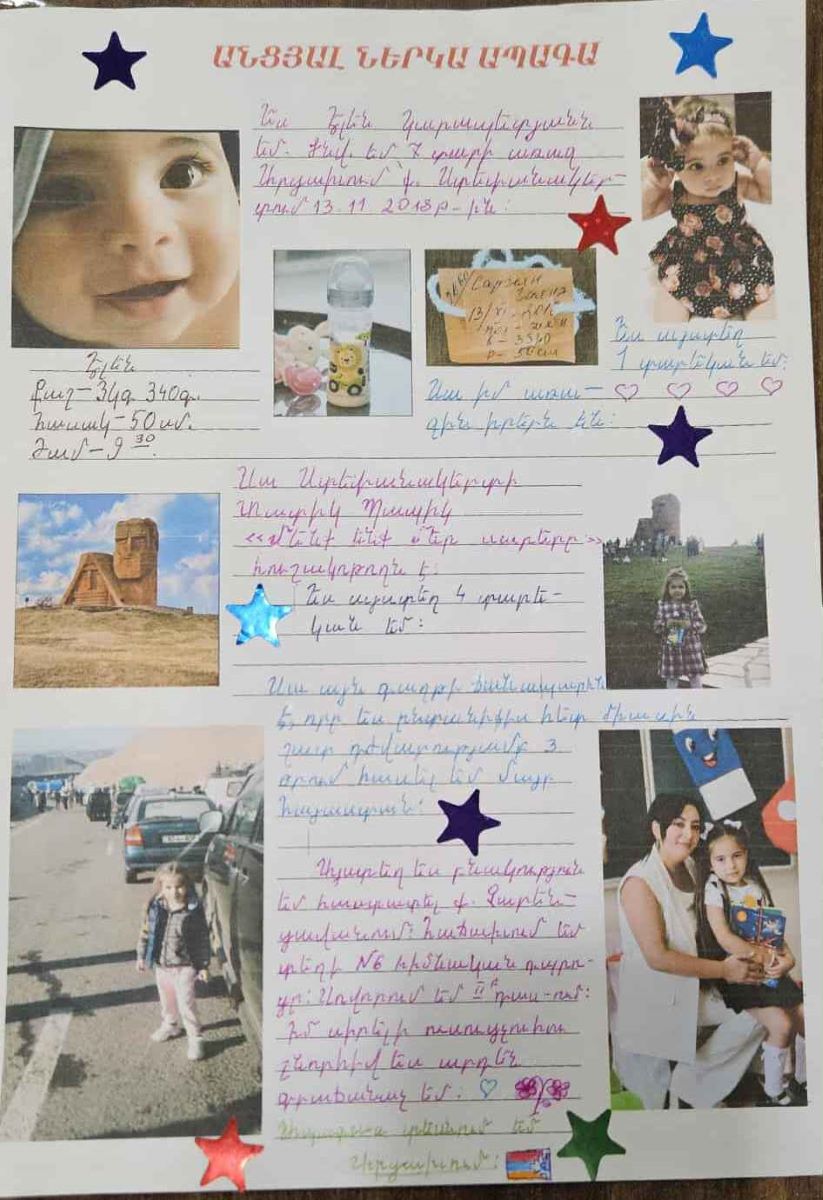 Сейчас семья живет в Чаренцаване. Элен учится во втором классе. Ее дневник полон множества звездочек – маленьких лучиков надежды, доказательств того, что сердце ребенка, пережившего войну, способно радоваться и побеждать.