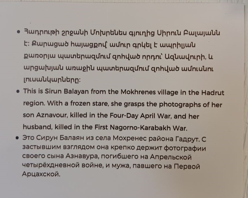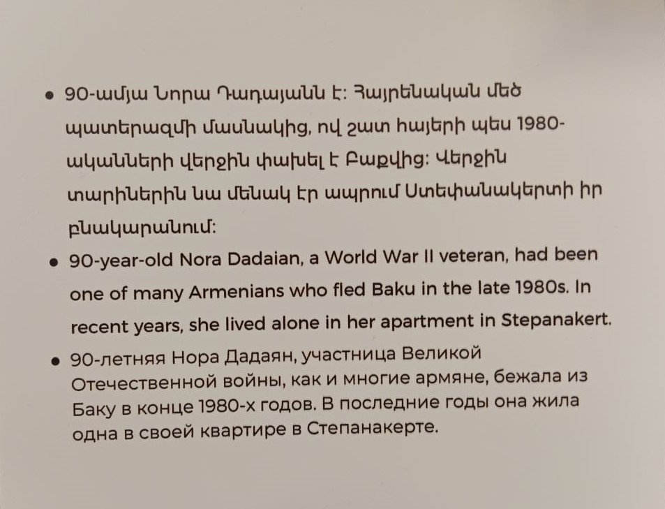 25 октября в Ливинг рум в Ереване, созданном artasfoundation- базирующейся в Швейцарии независимой неправительственной организацей — состоялось открытие выставки арцахской журналистки, фотографа-документалиста и автора документальных фильмов Кнар Бабаян «Открытки из дома».