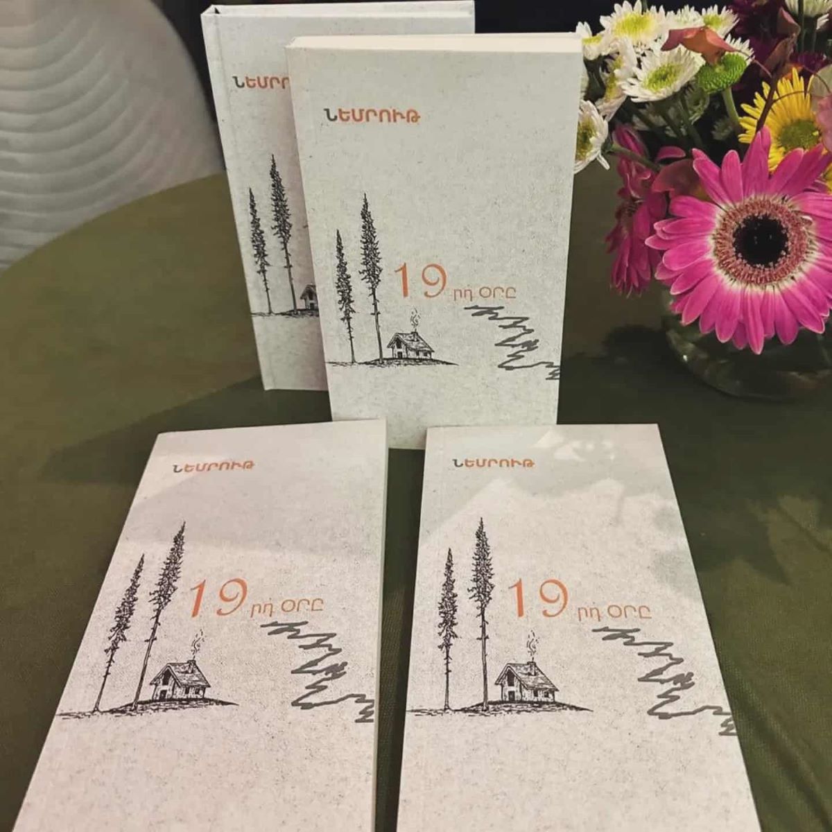 13 ноября в ереванском кафе «Туманянс арт» состоялась презентация книги арцахского поэта Сергея Сафаряна (псевдоним Немрут) «19-й день». Автор представил читателю свой очередной сборник, посвящённый Арцаху, где представил своё детство, дни, проведённые в Арцахе, свои мечты, невысказанную тоску и ожидания. Название книги было выбрано нелучайно. Автор имел в виду 19 сентября 2023 года.