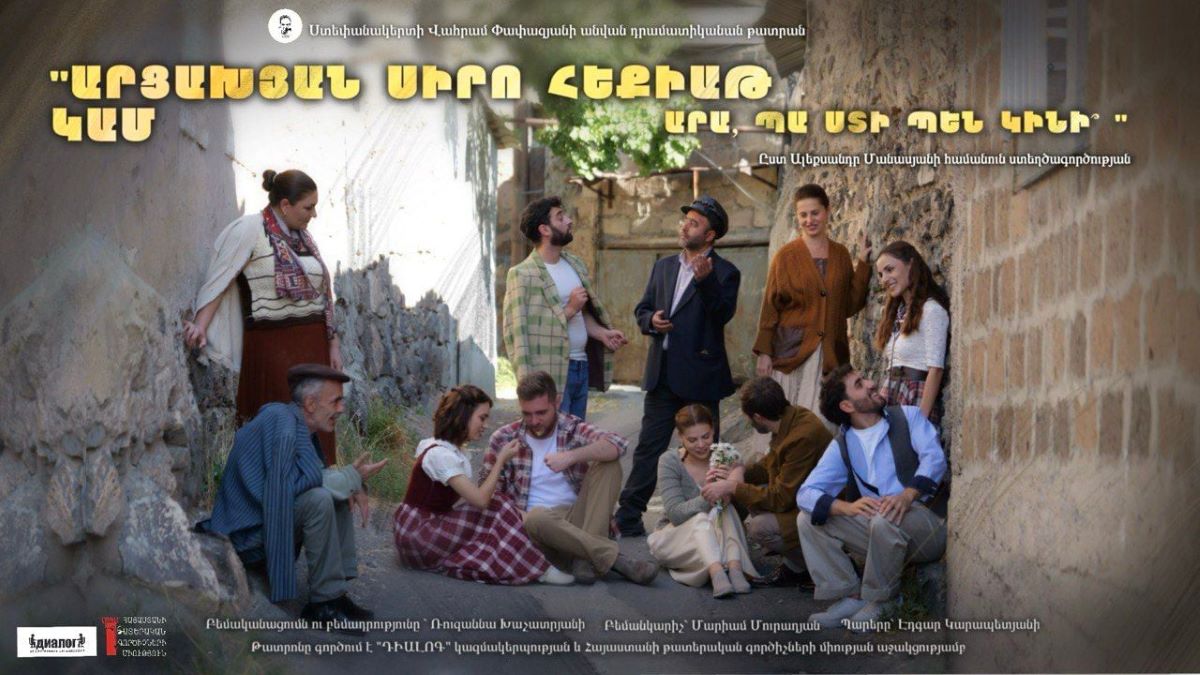 В ответ на письма и запросы зрителей, Степанакертский государственный драматический театр имени Ваграма Папазяна рад сообщить, что полюбившийся многими спектакль «АРЦАХСКАЯ ИСТОРИЯ ЛЮБВИ» или «АРА, ПА СТИ ПЕН КИНИ» снова возвращается на сцену.
