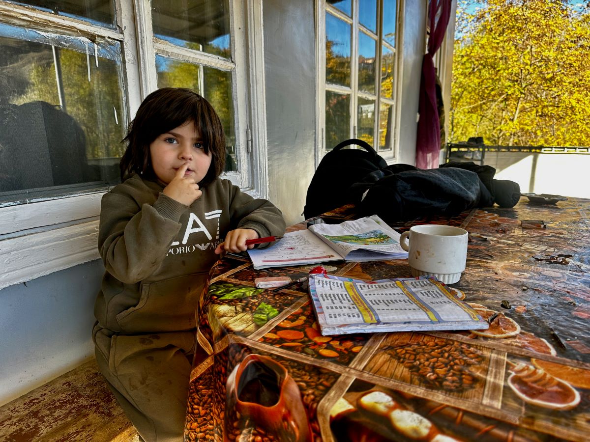 Ани называет людей в военной форме айастаны. «На той горе есть айастаны, я сегодня видела айатанов, трое айастанов прошли мимо нашего дома», — говорит она и разрывает фантик от конфеты. Брат Ани тоже говорит, что скоро станет айастаном и будет служить полтора года. «Я вернусь домой на полгода раньше, помогу дедушке чем-нибудь», — говорит он.