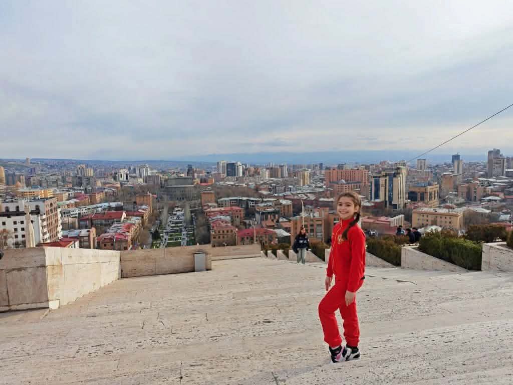 «Эстетической гимнастикой занимаюсь с раннего детства. Не раз занимала призовые места на российских региональных и федеральных соревнованиях. В международных соревнованиях принимаю участие впервые, и для меня большая честь, что они проходят на родине моих предков, о которой я слышала от родителей много раз. Армения впечатлила своей природой и архитектурой: величественными храмами и другими достопримечательностями, и я непременно сюда вернусь. Моя главная цель — занять первое место на международных соревнованиях, и я стремлюсь ее воплотить. Хотелось бы, чтобы на земле поскорее наступил мир. И чтобы все жили дружно», сказала в беседе со Step1.am 11-летняя Аня.