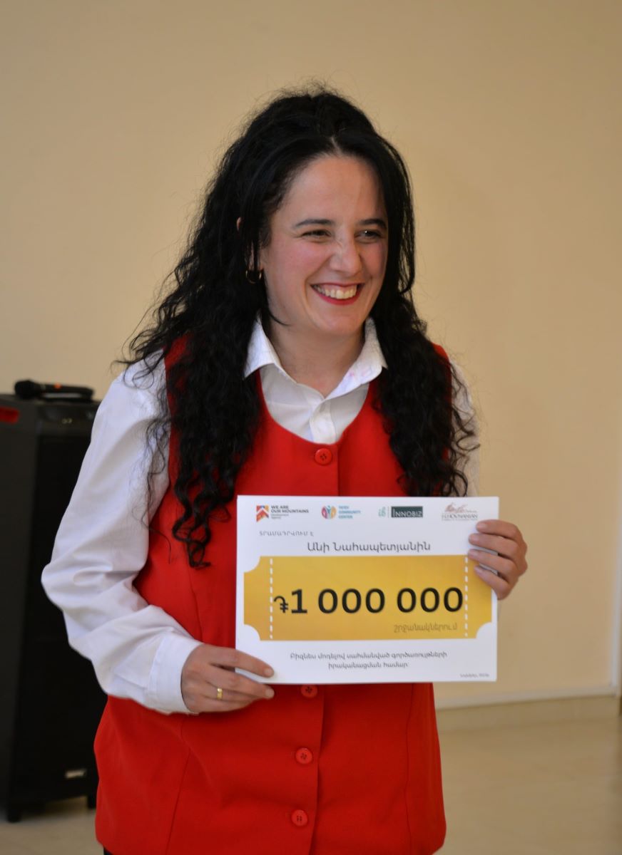 Напомним, что в марте этого года Агентство развития «Мы – наши горы» объявило о запуске проекта «Крылья для всех». Проект был реализован в расширенной общине Татев на средства гранта Фонда семьи Овнанян, при поддержке Федерации ACBA и в сотрудничестве с НПО «Иннобиз» и Общинным центром Татева. Цель программы – развитие предпринимательской культуры в Татеве, объединение семей переселенцев из Арцаха и местных жителей, а также формирование новой модели взаимодействия общин.